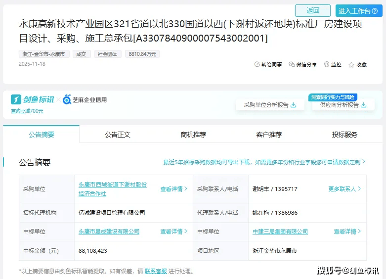 招采进度:通过剑鱼标讯数据阐发,该项目正在2025年10月10日发布投标通知布告,于2025年11月18日发布中标成果。扶植规模环境:新建厂房一幢,建建占地面积2197。74㎡,总建建面积30594。98㎡,此中地上建建24858。16㎡, 地下建建面积:5736。82㎡。