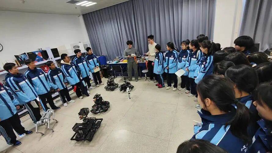 循着科技的脚印,学子们来到机械人孵化室,霎时被这里灵动的智能设备所吸引。Nao机械人的矫捷互动、Alpha机械人的文雅舞姿、擂台机械人的激烈博弈,还有憨态可掬却身手强健的宇树机械狗,让同窗们大开眼界。最令人兴奋的是实操体验环节,正在教员的指点下,大师亲手操控机械狗完成腾跃、转向等动做,当看到本人操控的机械狗矫捷挪动时,学生们按捺不住本人冲动的表情连连叫好。这场沉浸式体验,不只让同窗们曲不雅领会了机械人的工做道理,更正在趣味互动中感触感染着人工智能手艺的无限魅力,点燃了摸索智能世界的热情。